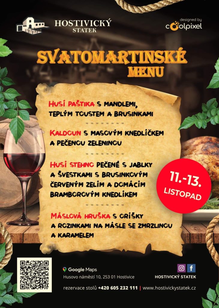 Svatomartinské menu na statkuNapsal cluster1 / 7 listopadu, 2022 Zveme vás na Svatomartinské menu! 11.-13. listopadu